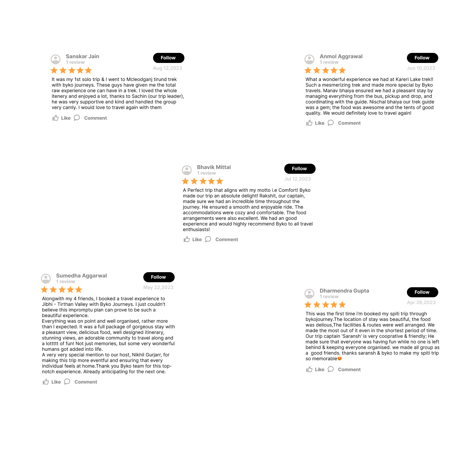 Group trips are fun when you have like-minded fellow travelers. We assure that through a well-defined filtering process at all the stages, beginning from marketing, sales to operations.